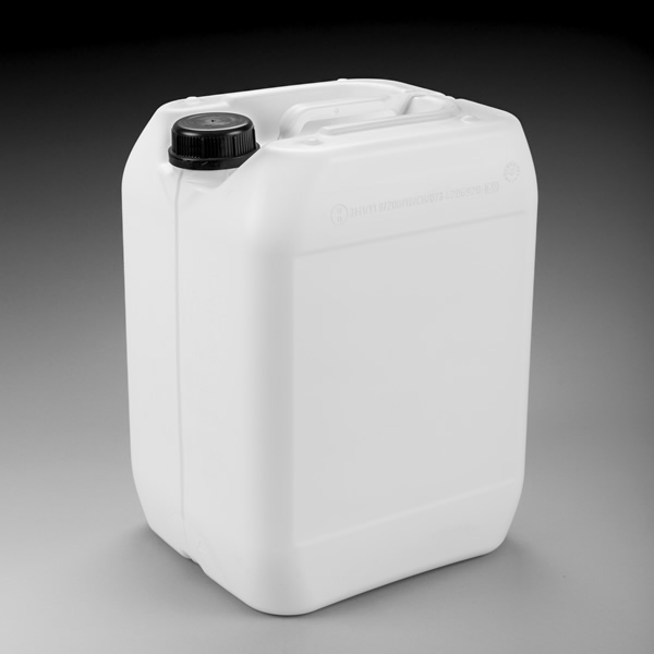 This 20L container is manufactured in 6 co-extruded layers of Polyethylene (PE) and co-polymer Ethylene vinyl alcohol (EVOH). The addition of EVOH provides an oxygen barrier & protects the Polyethylene from chemicals that would typically permeate through it.